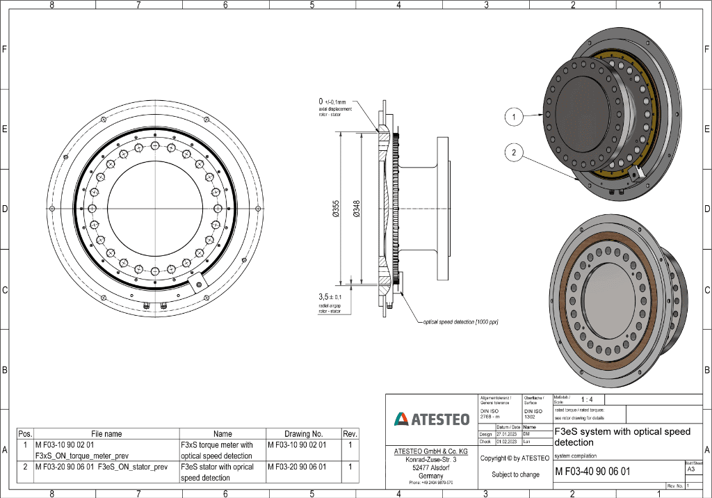 Like its inductive counterpart, the F3eS offers exceptional accuracy (≤ 0.1%) and a robust construction capable of withstanding significant axial and lateral forces. It is the preferred solution for high-power E-Mobility test benches and turbine applications where signal purity is critical.