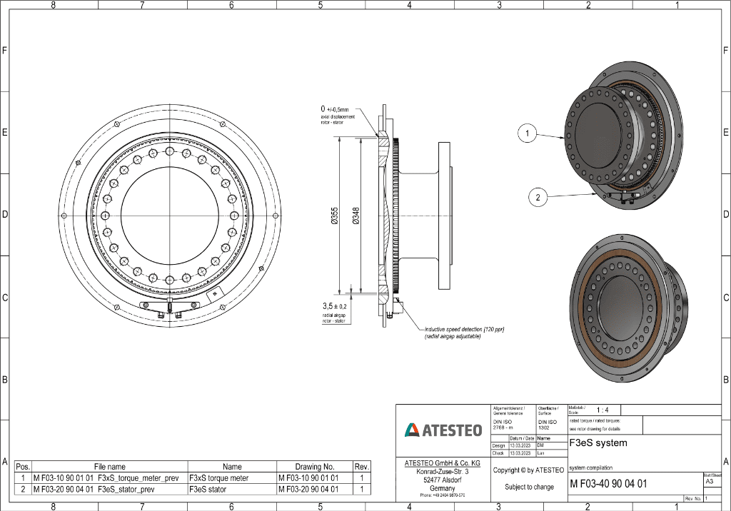 He Torque Sensor F3eS ATESTEO is the benchmark in digital optical measurement for extreme ranges of 30,000 Nm to 50,000 Nm. Its advanced telemetry system optics It guarantees total immunity to electromagnetic interference (EMC), offering pure and Superior even in the noisiest industrial environments, with operating speeds of up to 5,500 rpm.