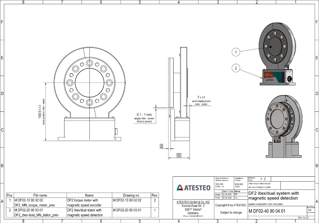 El Sensor de Par DF Dual 2 forma parte de la familia DF de Atesteo, diseñado para la medición física de variaciones torsionales en bancos de prueba y aplicaciones industriales de alta exigencia.