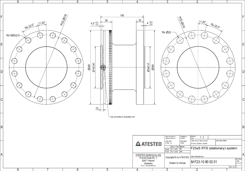 El Sensor de Par Torsor F23-RTS de ATESTEO es un instrumento de alta gama diseñado para la medición de par por reacción en aplicaciones estáticas, cubriendo rangos de 20.000 Nm a 30.000 Nm. Basado en tecnología de galgas extensiometricas de Precisión Superior (clase 0.05%), este transductor ofrece una estabilidad excepcional y una fiabilidad total en transmisiones que operan a 0 RPM.