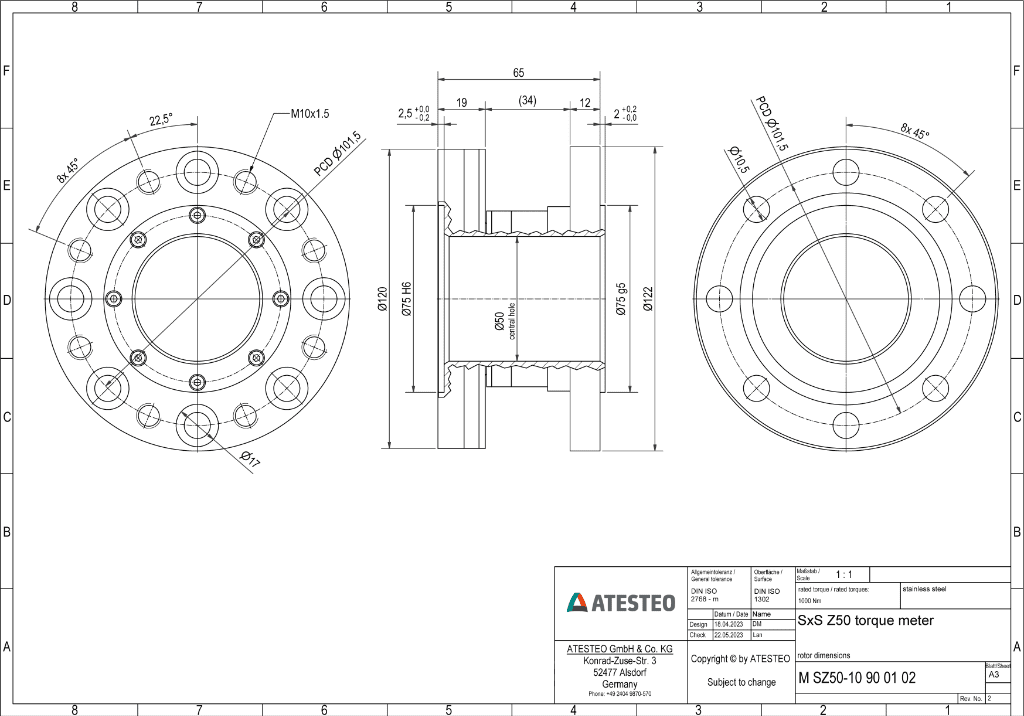 El Sensor de Par Torsor SiS Z50 es el pináculo de la gama inteligente de ATESTEO. Fabricado con un rotor de titanio ultra-ligero y una clase de precisión del 0.05%, es el líder absoluto para aplicaciones de alta dinámica que requieren electrónica integrada.
